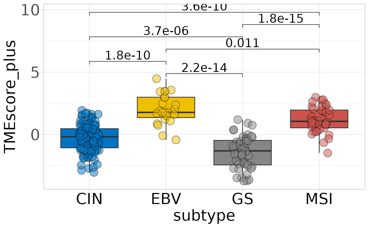 #> 1 signature CIN EBV 1.81e-10 7.30e-10 1.8e-10 **** Wilcoxon